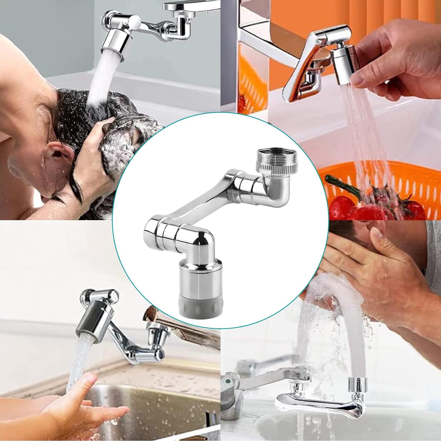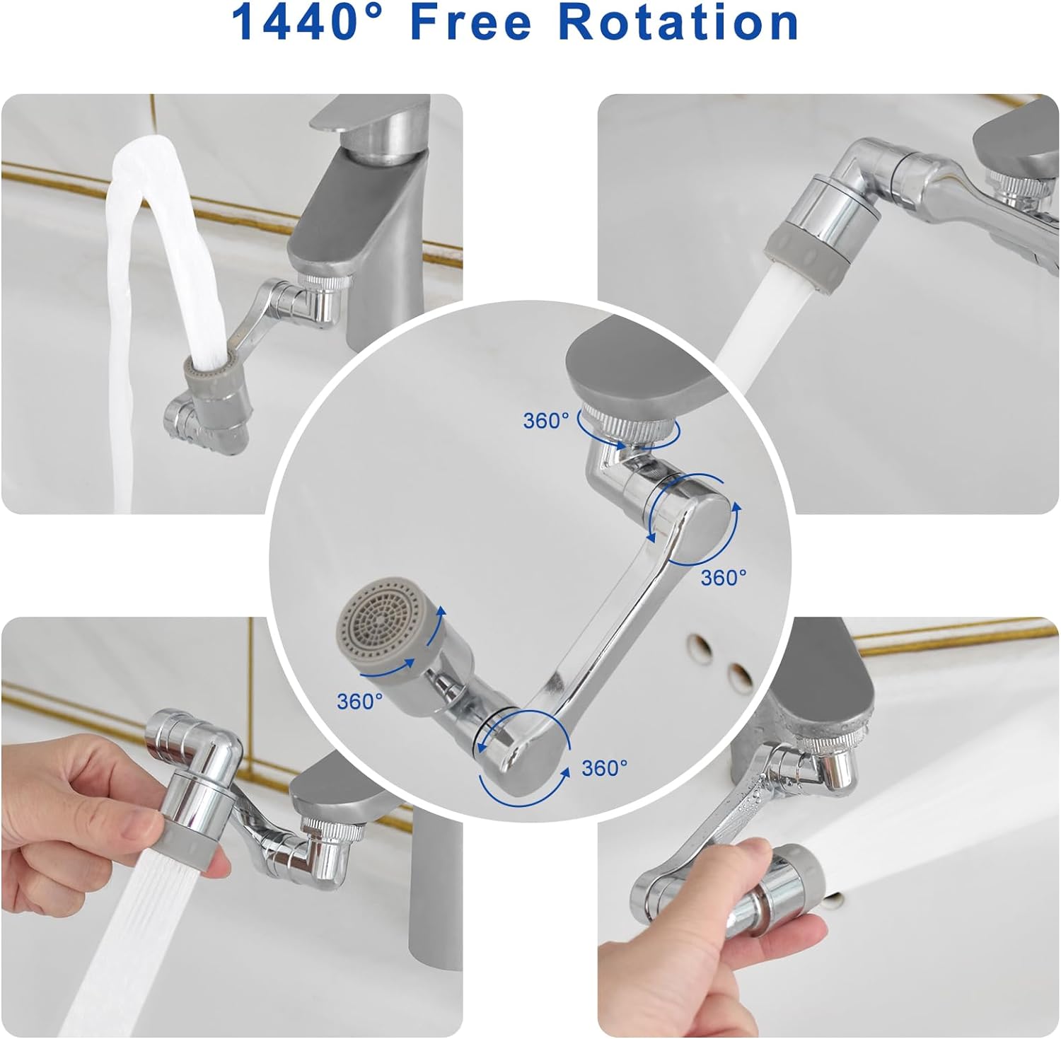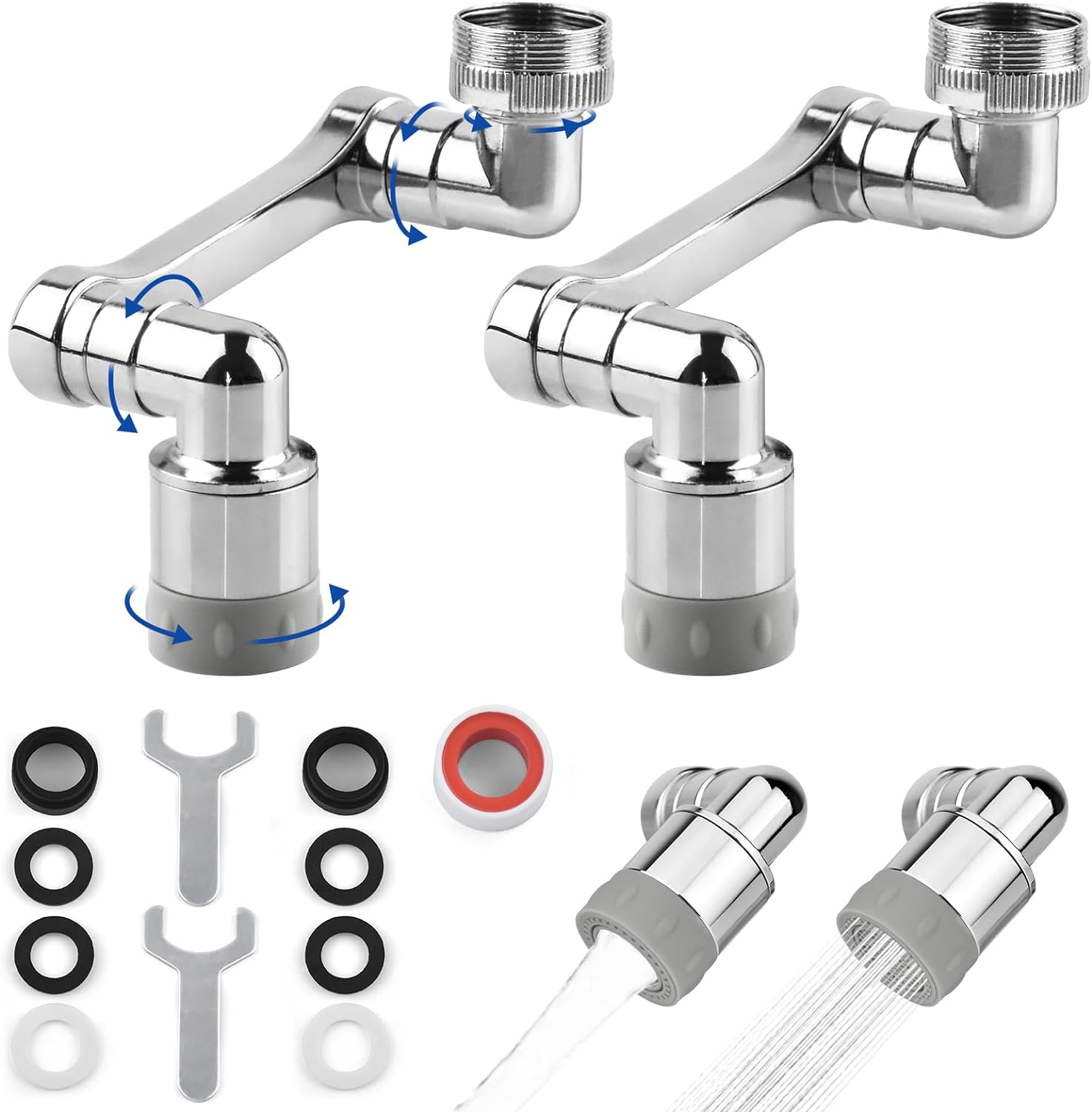 - 【2 aeratori per rubinetti girevoli a 1440° 】Il set contiene 2 aeratori per rubinetti, progettati con 4 giunti, ogni giunto può essere ruotato di 360°, quindi ogni aeratore può ruotare di 1440° raggiungendo ogni angolo del lavandino per la pulizia e il lavaggio. Il che rende facile l'utilizzo di questi due aeratori sui rubinetti della cucina e del bagno per risolvere il problema del rubinetto troppo basso/alto/corto.