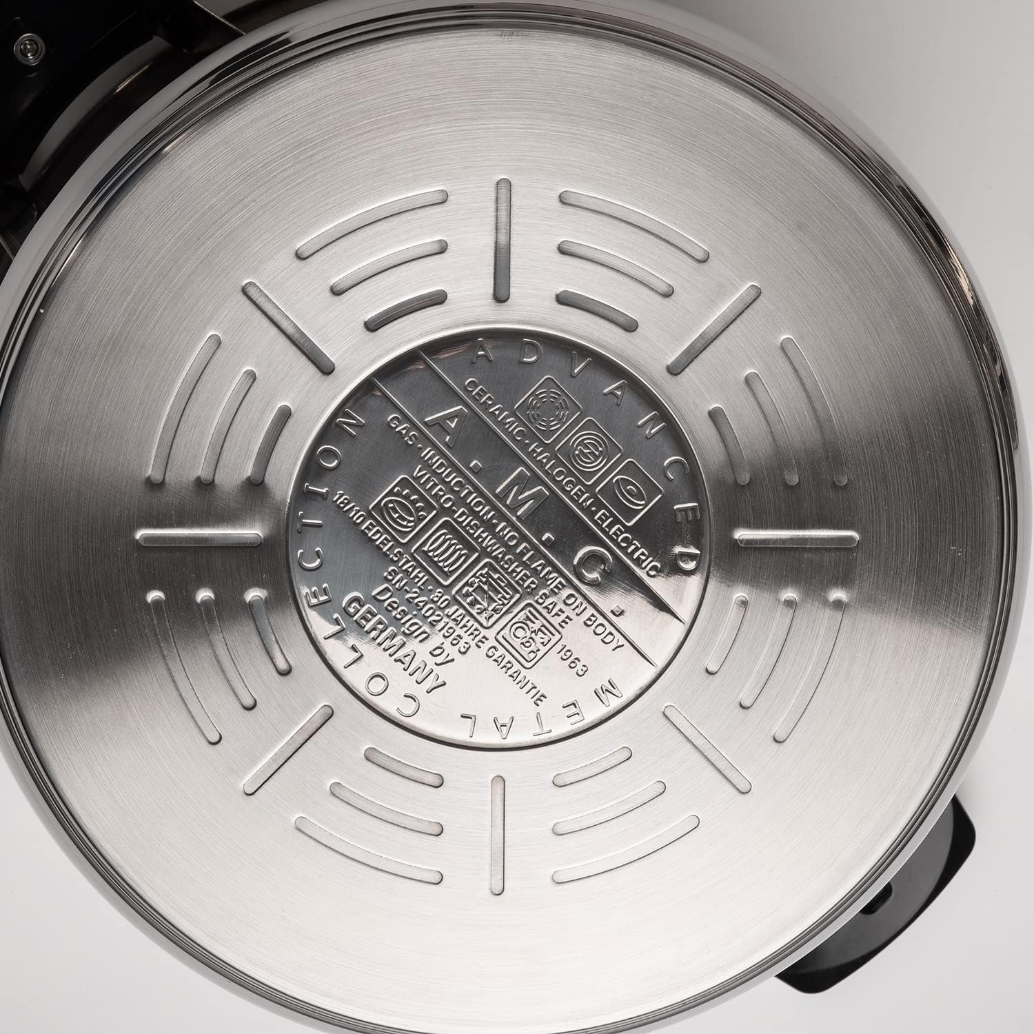 A.M.C. Set batteria di pentole e tegami in acciaio inox 18/10, tradizionale e induzione kit 18 pz con omaggio set coltelli in ceramica antibatterici da 8 pz, fondo con triplo strato incapsulato
