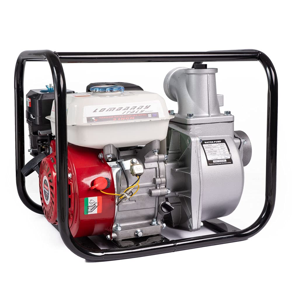 AMC Motopompa a scoppio autoadescante con motore a benzina 4 tempi (60.000 l/h 6,5 CV,30m Altezza massima di aspirazione dell'acqua 7m per giardinaggio ed irrigazione,con attacco 3 pollici)