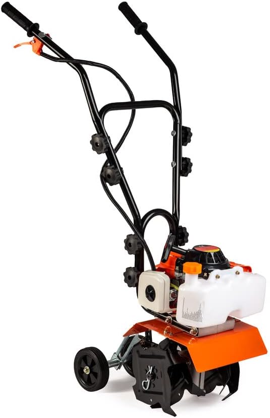 AMC Motozappa motocoltivatore zappatrica con motore a scoppio 2 tempi da 52cc e 3,7 cv di potenza con una larghezza del raggio di lavoro di 30 cm e profondità di 15 cm zappette in acciaio rinforzato