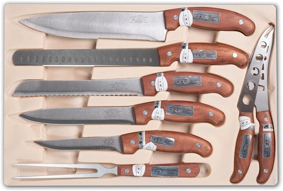 AMC Set di posate ed accessori da 24 pezzi realizzati in acciaio inox 18/10 lucido con manici manici in legno elegante