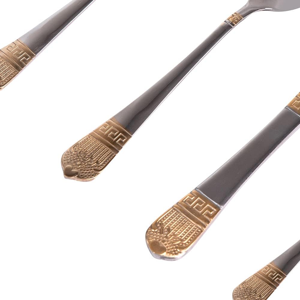 AMC Set di posate ed accessori per 12 persone realizzati in acciaio inox 18/10 lucido con manici decorati con una trama greca in stile luxury