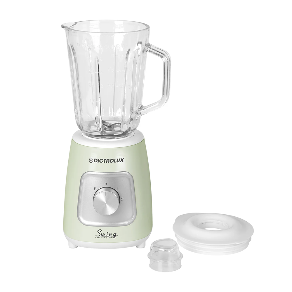 Materiale: Corpo in ABS – Lame in acciaio inox – Caraffa in vetro – Capacità: 1,5 litri – Colore: Verde – Velocità: 2 + Pulse – Potenza: 1000W – Tensione: 220-240V ~ 50/60Hz – Lunghezza cavo: 80 cm