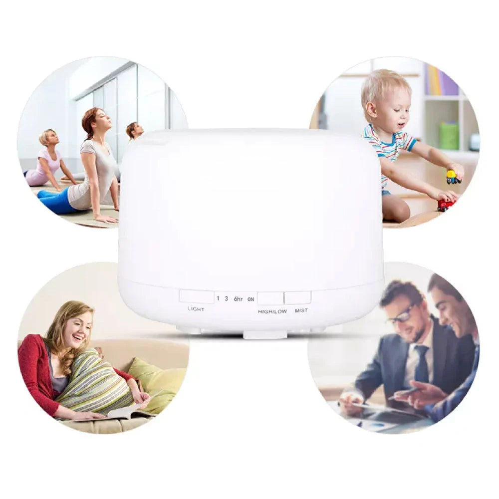 Umidificatore da 500 ml, questo diffusori olio essenziale può funzionare ininterrottamente per 10 ore, il che evita di alzarti di notte per aggiungere acqua. Può disperdere gli olii essenziali in una stanza da 30 a 60 metri quadrati, che può produrre umidità fino a 30 millilitri all'ora, che può durare per 10 ore di basso consumo continuo.