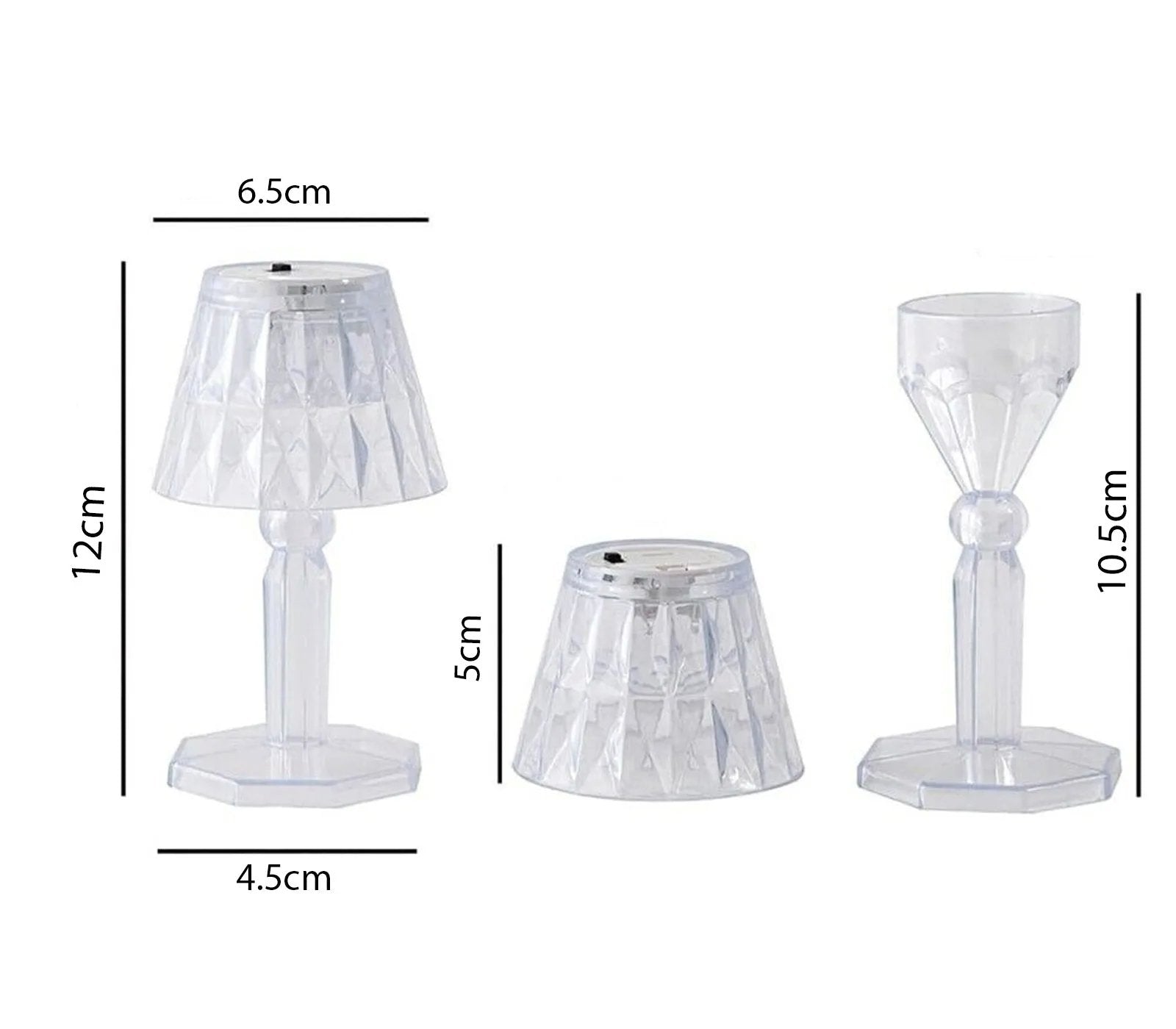Dimensioni: 4,5 x 12 x 6,5 cm – Alimentazione: batterie (non incluse) – Colore luce: calda – Uso: illuminazione ambientale e decorazione – Design: cristallo senza fili