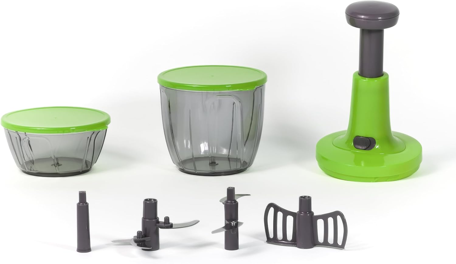 Mixer Tritatutto Manuale, 5 Lame acciaio Inox, Trita Verdure Manuale, Frullatore Manuale Taglio di Cipolla Manuale Tritaverdure da Cucina, press Chopper, 2 Contenitori 900 + 500 ml