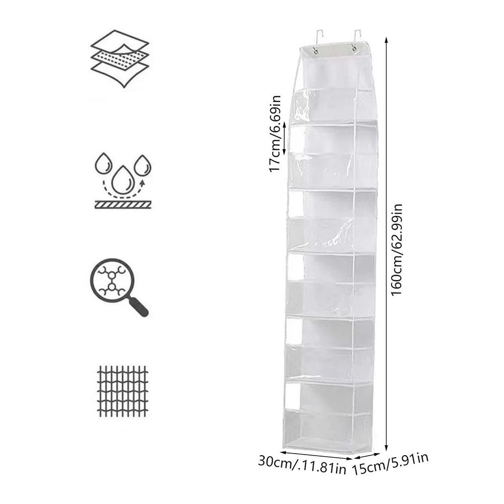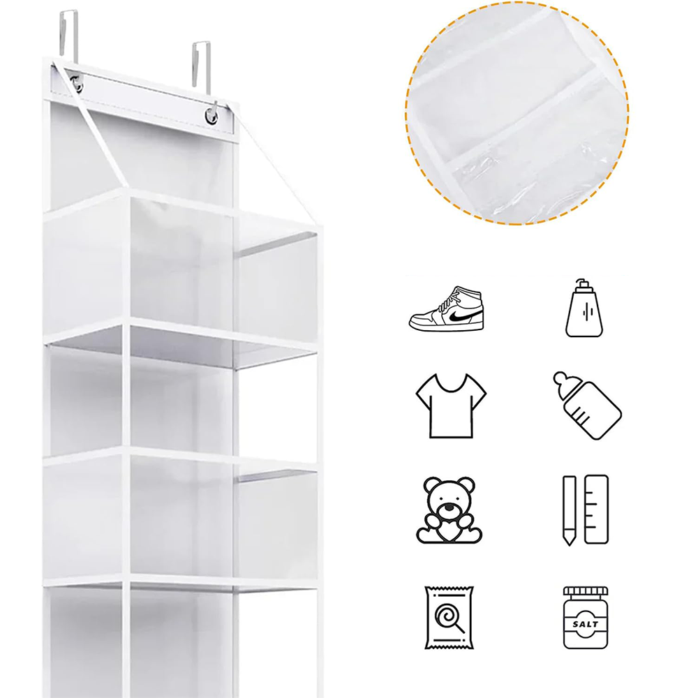 Massimizza lo spazio con l'organizer da appendere a 6 scomparti, facile da usare e super resistente. La finestra trasparente ti permette di vedere subito cosa c’è dentro, mentre i ganci metallici lo rendono facile da appendere ovunque senza danni.
