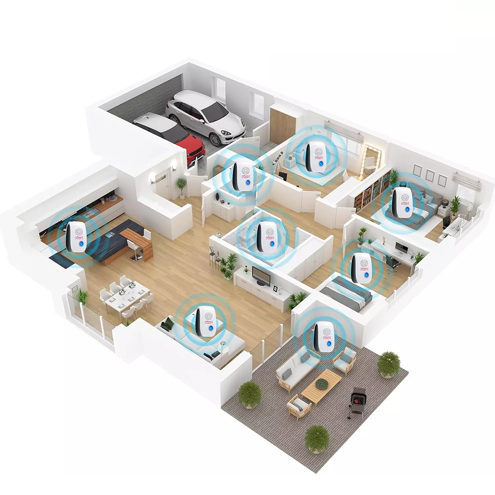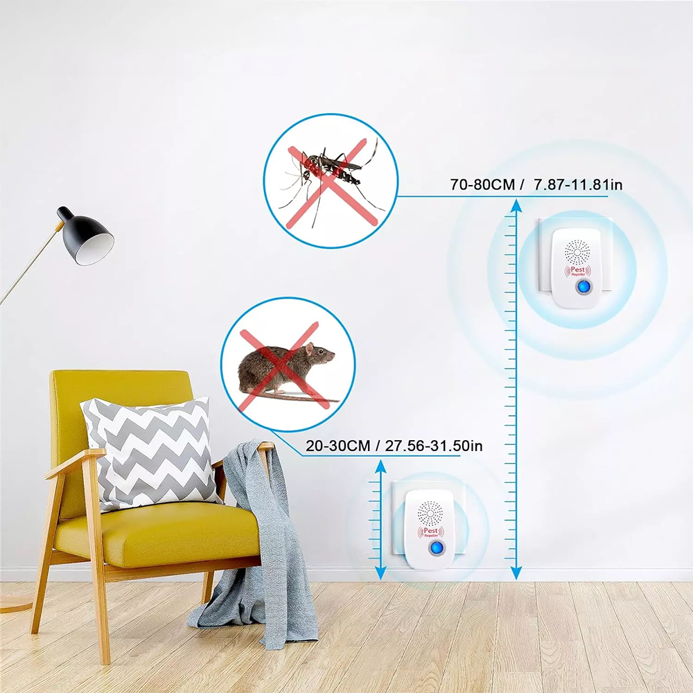 Materiale: ABS – Tensione: AC90~220V – Potenza: 5W – Frequenza: 50~60Hz – Gamma Ultrasonica: 20kHz–55kHz – Dimensioni: 9 x 6,5 x 5,5 cm – Spina: Europea – Installazione: Altezza consigliata 20–80 cm – Copertura: fino a 1200 ft² – Sicurezza: Innocuo per esseri umani e animali domestici