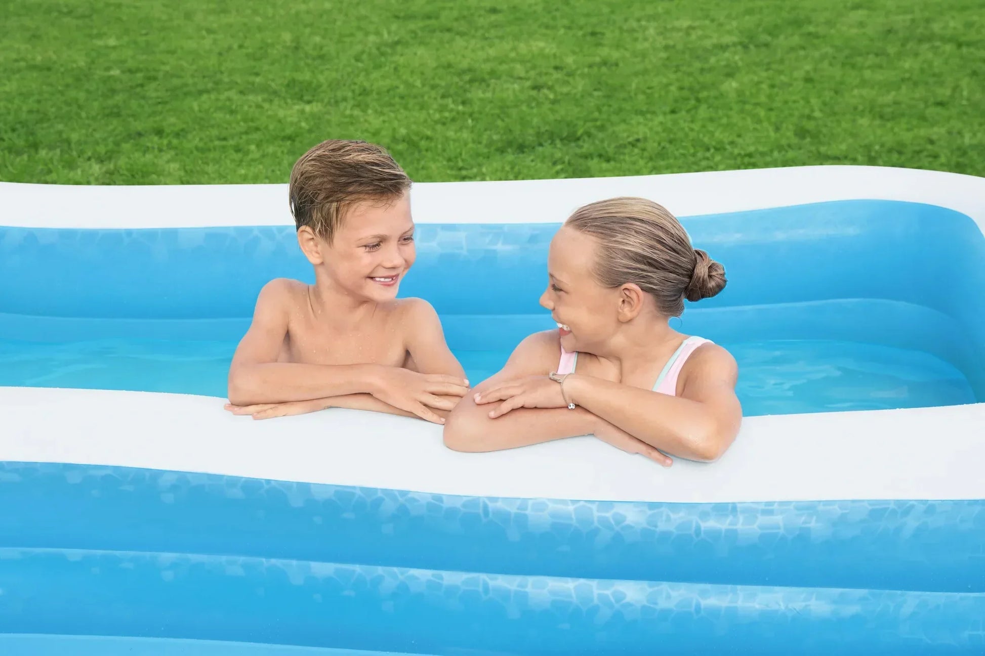 Concepita per far divertire i bambini (e anche gli adulti!) e per godersi l'aria aperta, la piscina gonfiabile rettangolare è sinonimo di qualità testata e di divertimento assicurato! Questa piscina rettangolare dalle dimensioni di 262x175x51 cm è realizzata con vinile pre-testato di alta resistenza. Grazie alle ampie pareti laterali, questa piscina è perfetta per le giovani famiglie che amano immergersi in acqua e godersi il sole. E smontarla al termine dell'uso è un gioco da ragazzi grazie alla valvola di scarico semplice da utilizzare. Porta a casa la tua piscina rettangolare e immergiti nell'estate. Acquista ora e fai scorta di divertimento per tutta la stagione!