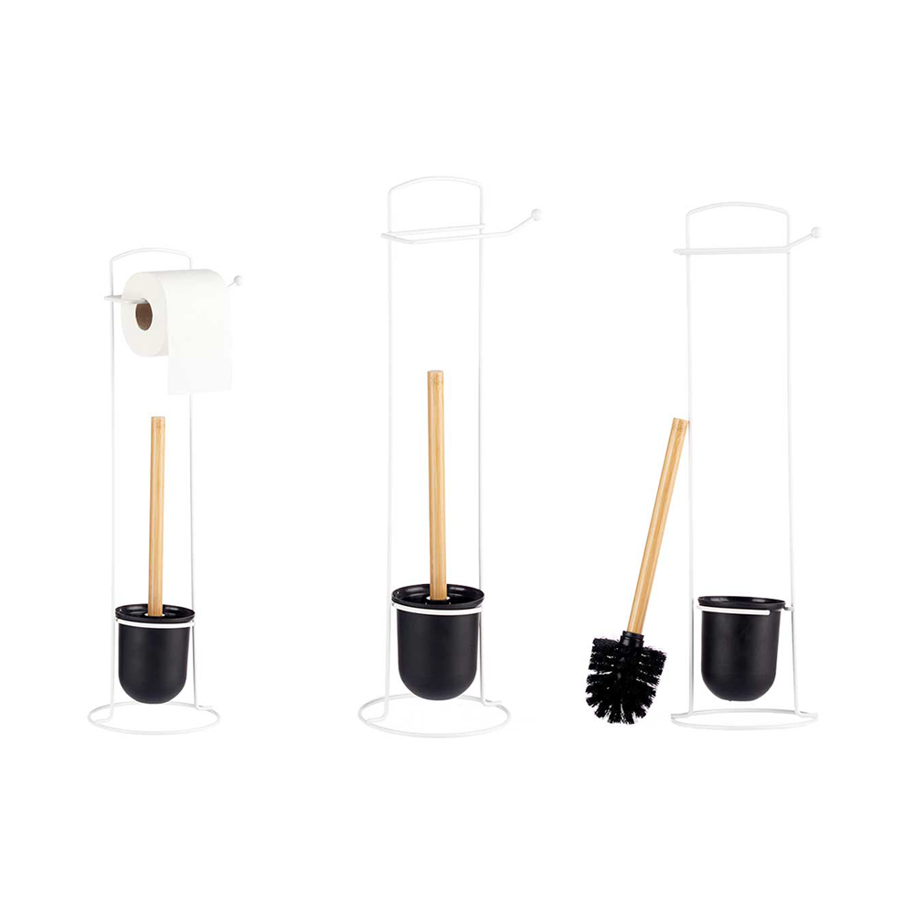 Tipo: Porta carta igienica con scopino – Materiale: Metallo e bambù – Colore: Bianco – Dimensioni: 17 x 57 x 16,5 cm – Stile: Moderno, minimal – Utilizzo: Bagno, WC – Caratteristiche: Salvaspazio, con scopino incluso