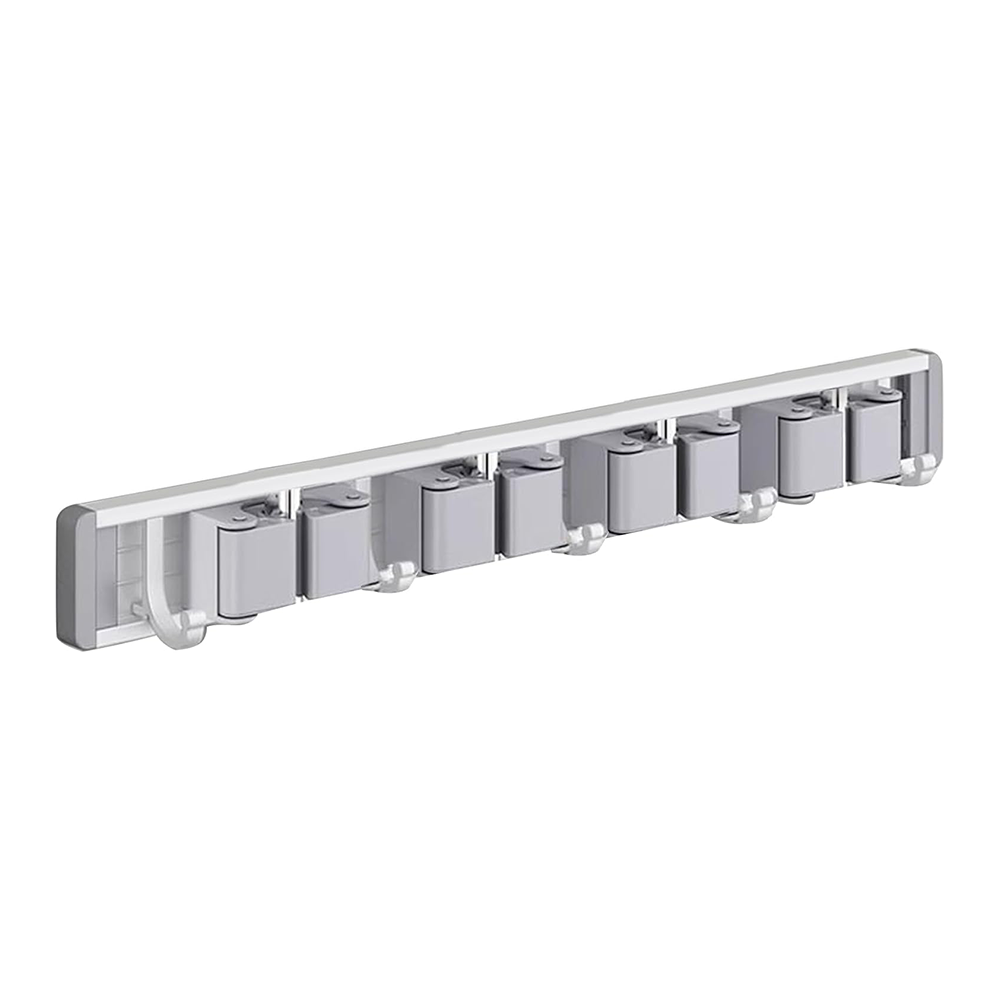 Materiale: Alluminio + ABS - Capacità di carico: fino a 10 kg - Finitura: resistente all’acqua e all’umidità - Montaggio: adesivo incluso, senza fori o viti - Sistema di presa: doppia gomma antiscivolo + silicone - Utilizzo: per scope, mop, attrezzi da giardino, rastrelli, ecc.