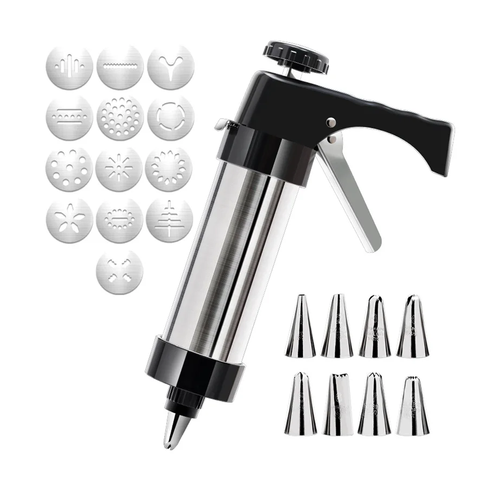 Pressa per Biscotti con 13 Stampi e 8 Ugelli – Kit Completo per Dolci Creativi in Acciaio Inox