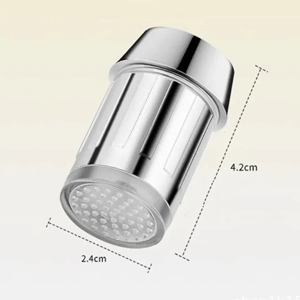 Dimensioni: 2 x 2,4 cm – Alimentazione: energia idrica (nessuna batteria necessaria) – Materiale: ABS + componenti LED – Colori LED: blu, verde, rosso – Compatibilità: si adatta ai rubinetti standard con attacco rotondo – Uso: bagno, cucina, lavabi – Installazione: avvitamento semplice senza attrezzi – Design: moderno, salvaspazio, elegante