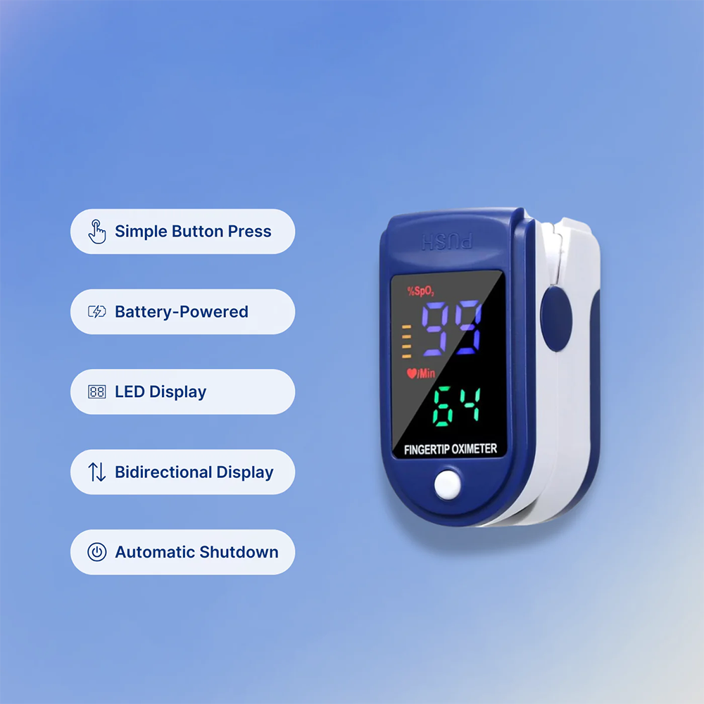 Tecnologia: LED di grado medico - Display: TFT a colori - Alimentazione: 2 batterie AAA - Autonomia: lunga durata con indicatore di batteria - Dimensioni: compatto e tascabile