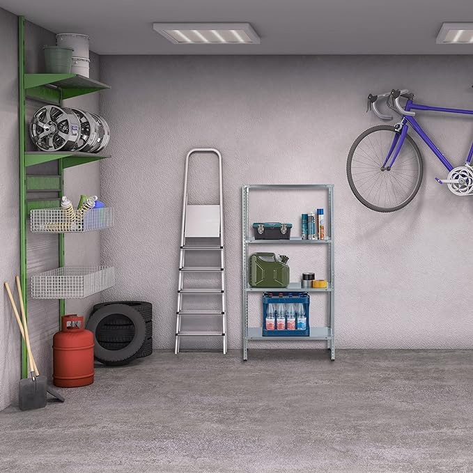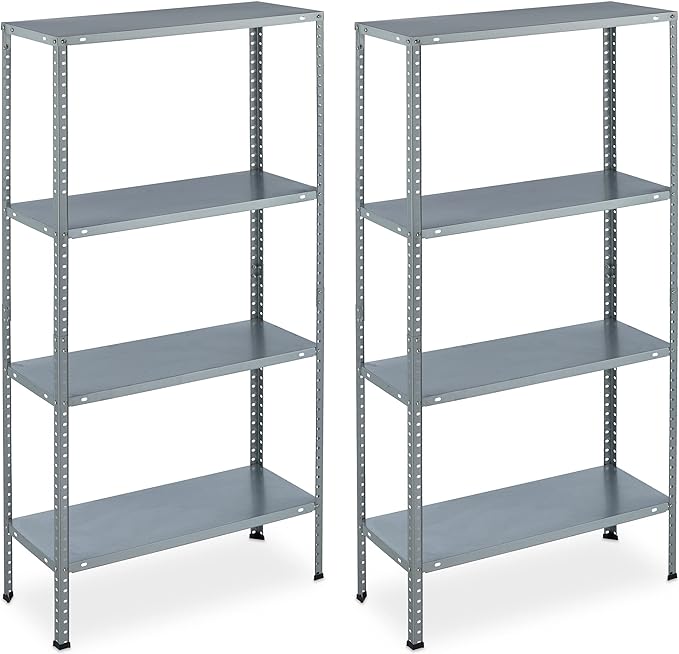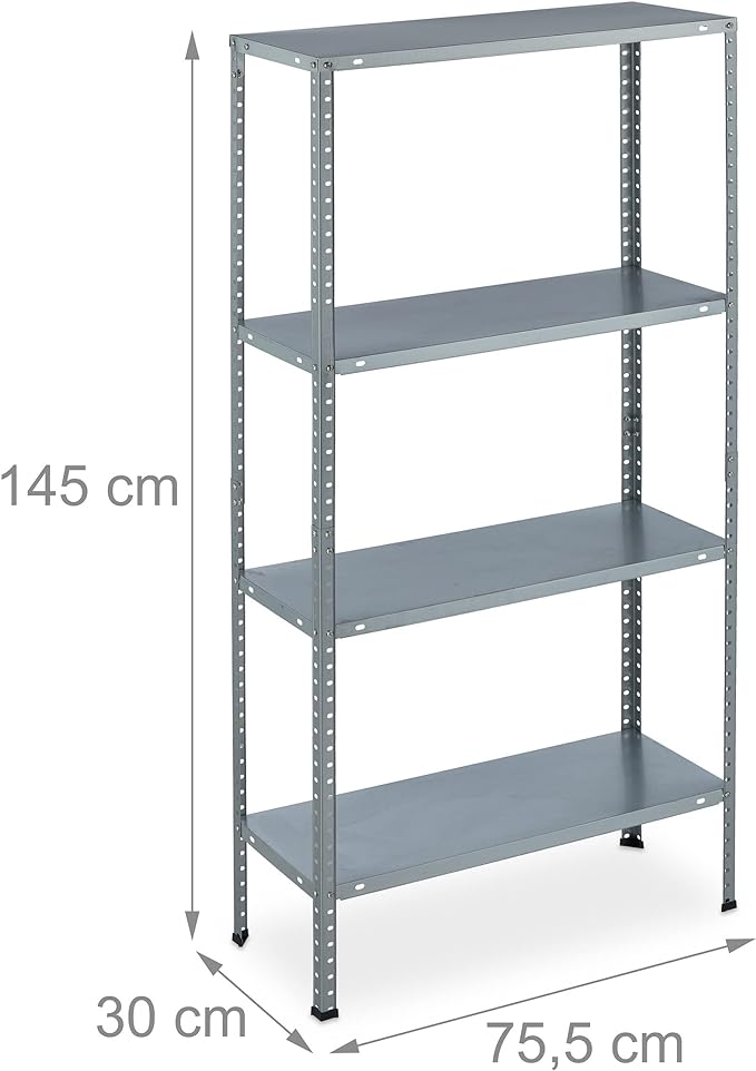 Scaffale in Metallo Zincato, capacità di 160 kg, HLP: 145x75,5x30 cm, 4 Ripiani, Acciaio, Cantina, Argento