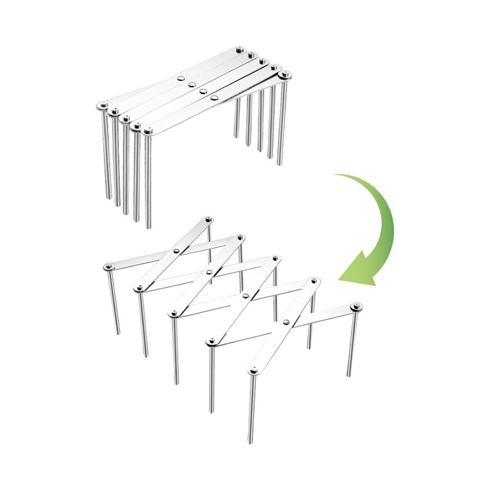 Organizza piatti, coperchi, bicchieri e utensili con questo supporto pieghevole in acciaio inox di alta qualità. Leggero ma ultra resistente, non arrugginisce e non necessita di installazione. Ideale per cucine moderne, camper, piccoli spazi e anche all'aperto.
