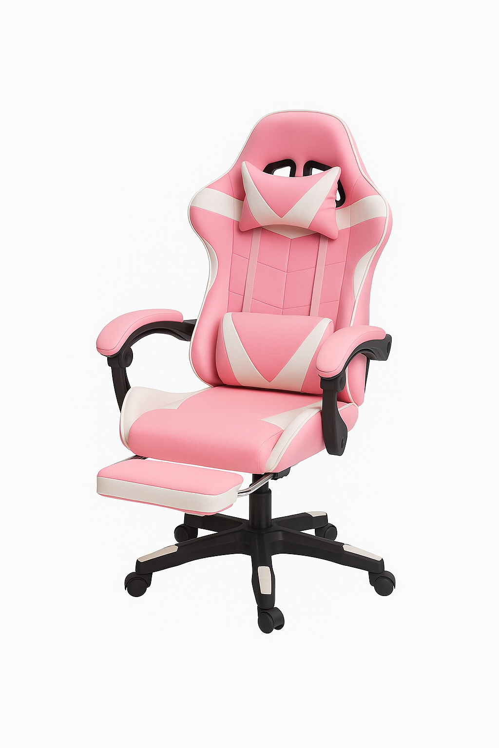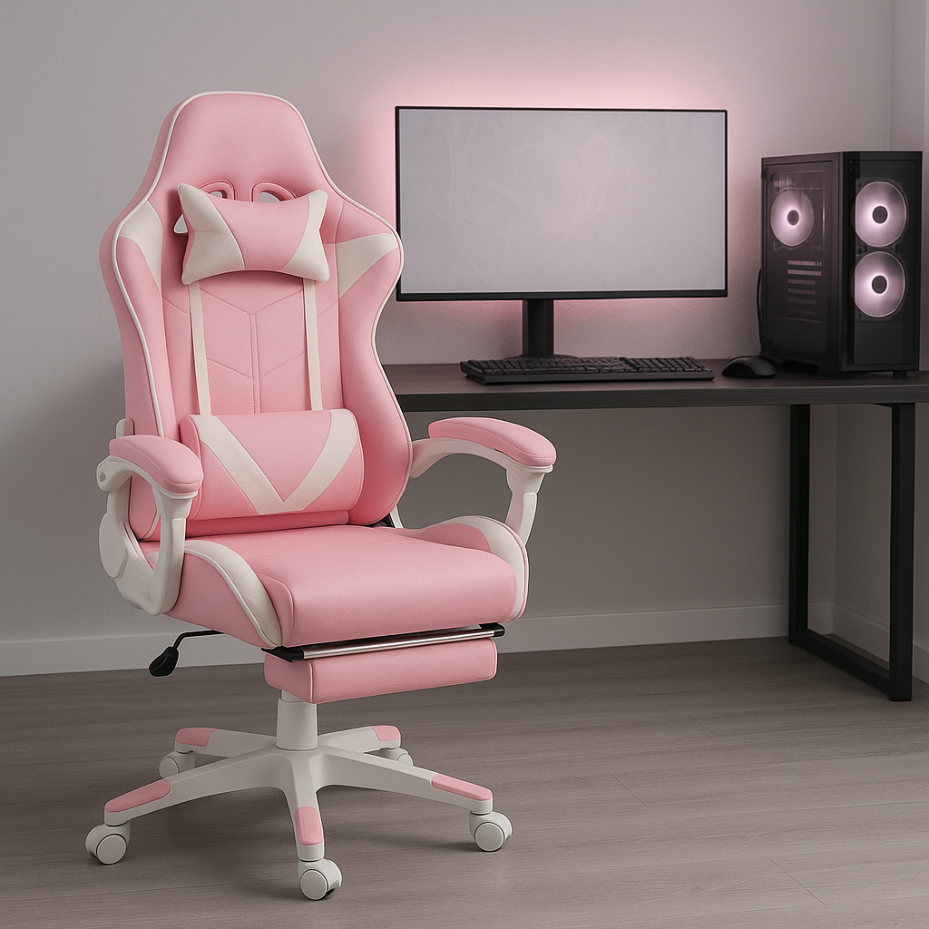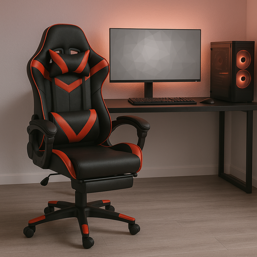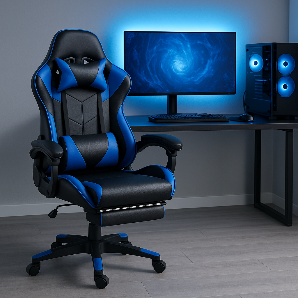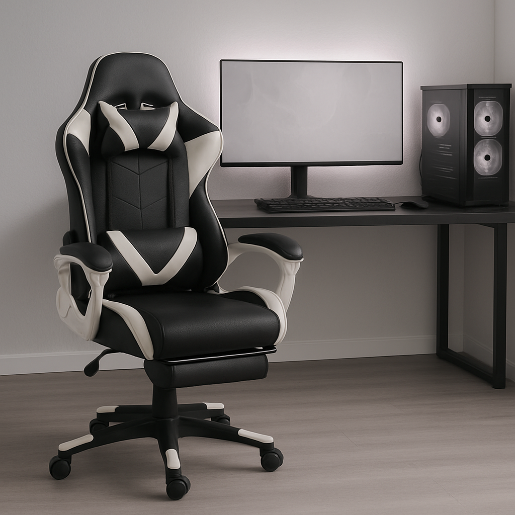 Sedia Gaming Ergonomica con Poggiapiedi Estraibile, Cuscino Lombare e Poggiatesta – Poltrona da Ufficio e Gaming in Ecopelle, Schienale Reclinabile 135°, Altezza Regolabile
