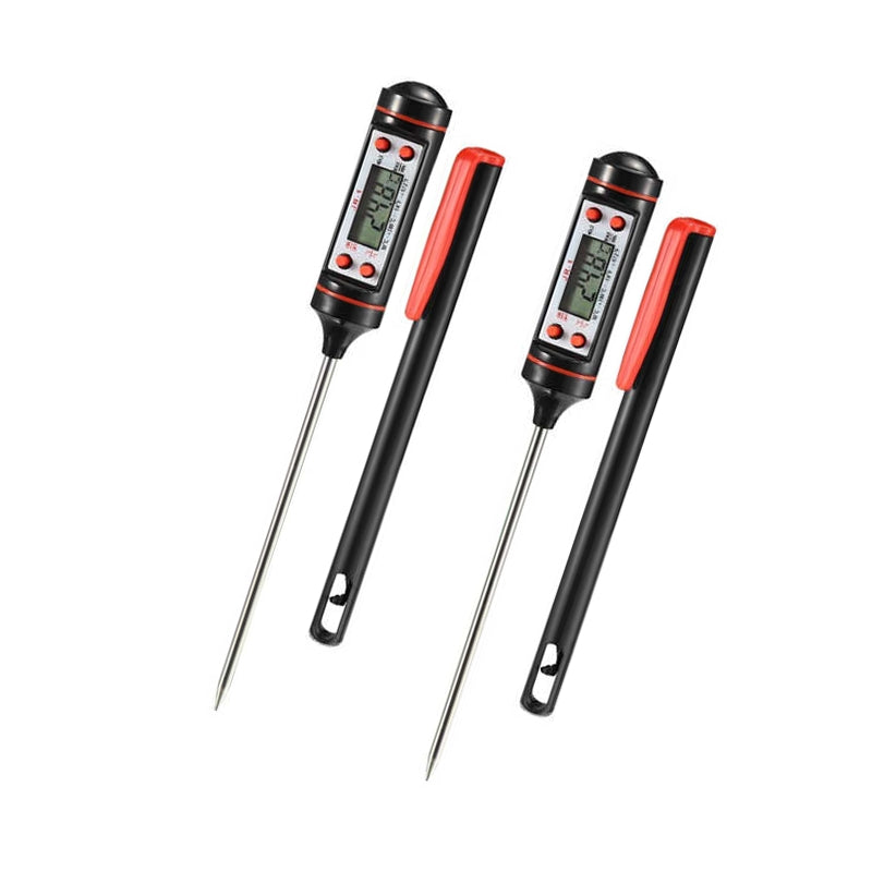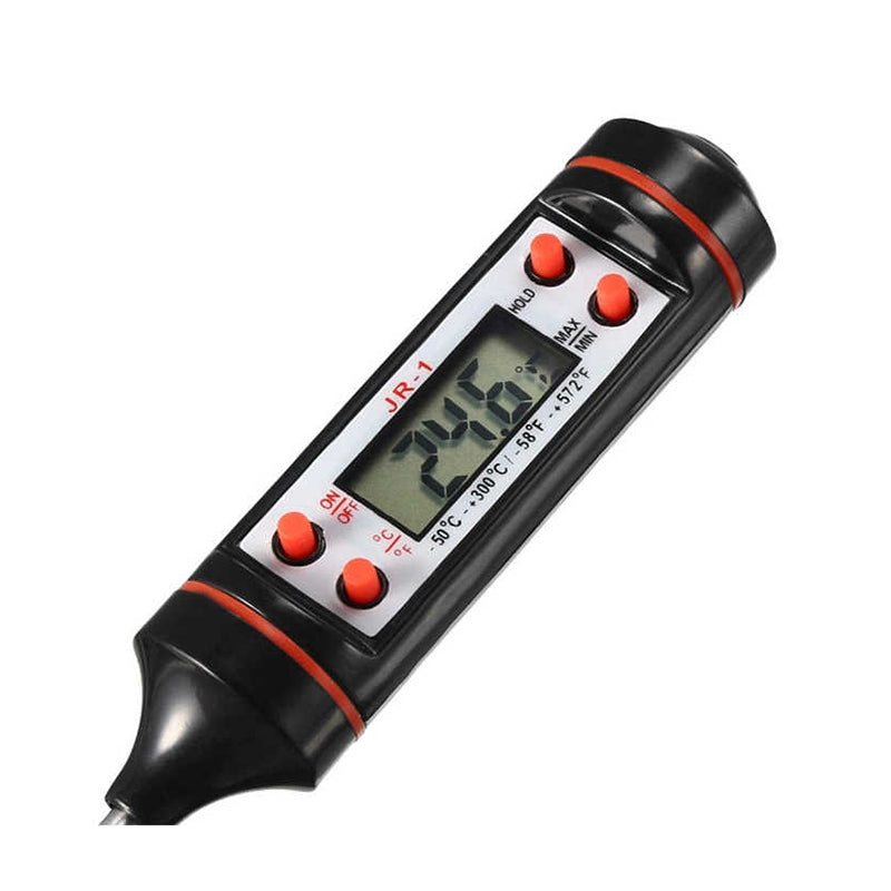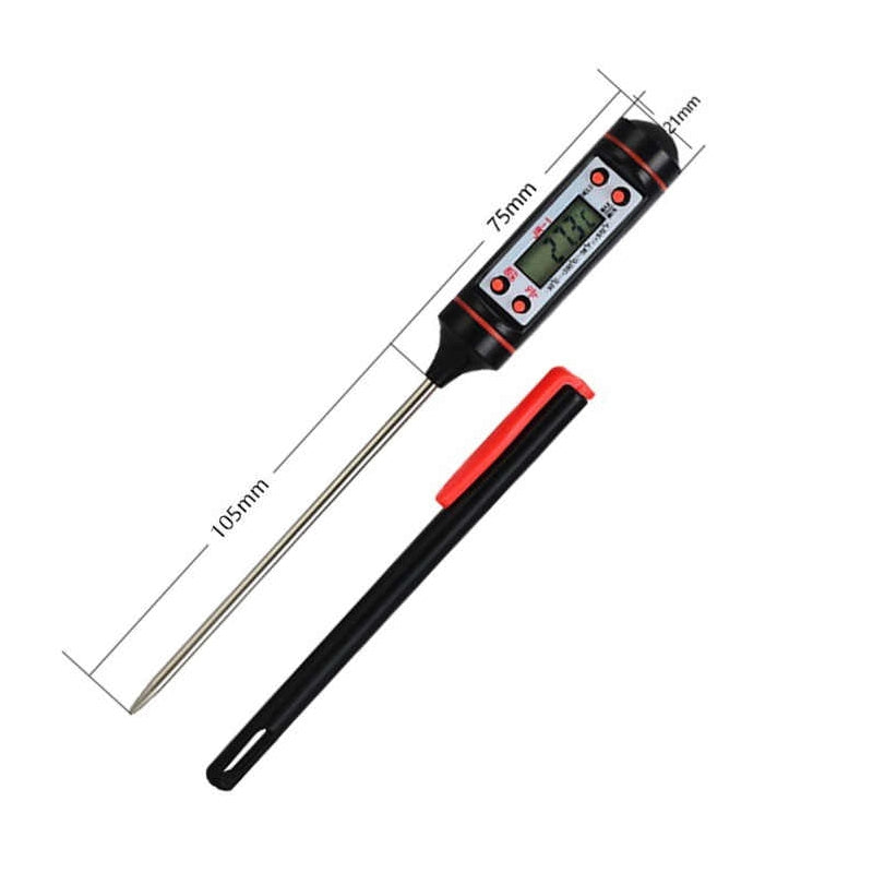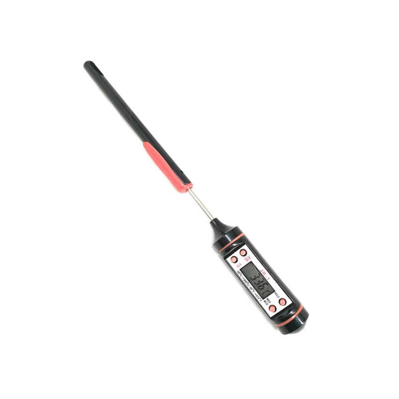 Tipo: Termometro digitale da cucina; Materiale: ABS + Acciaio inox; Dimensioni: 3.8 x 127 mm; Colore: Nero; Alimentazione: Batteria; Garanzia: 1 anno; Confezione: Blister card.