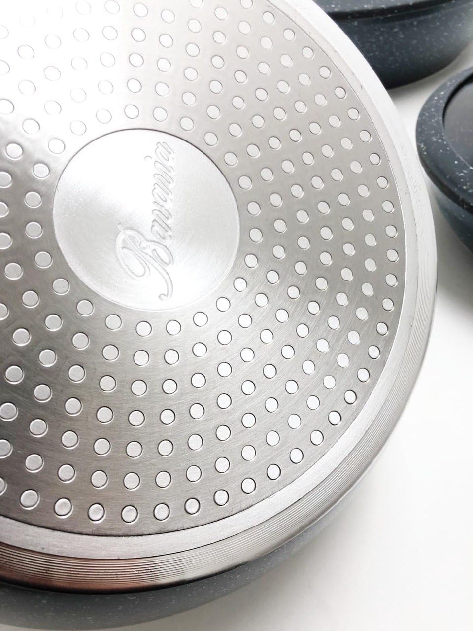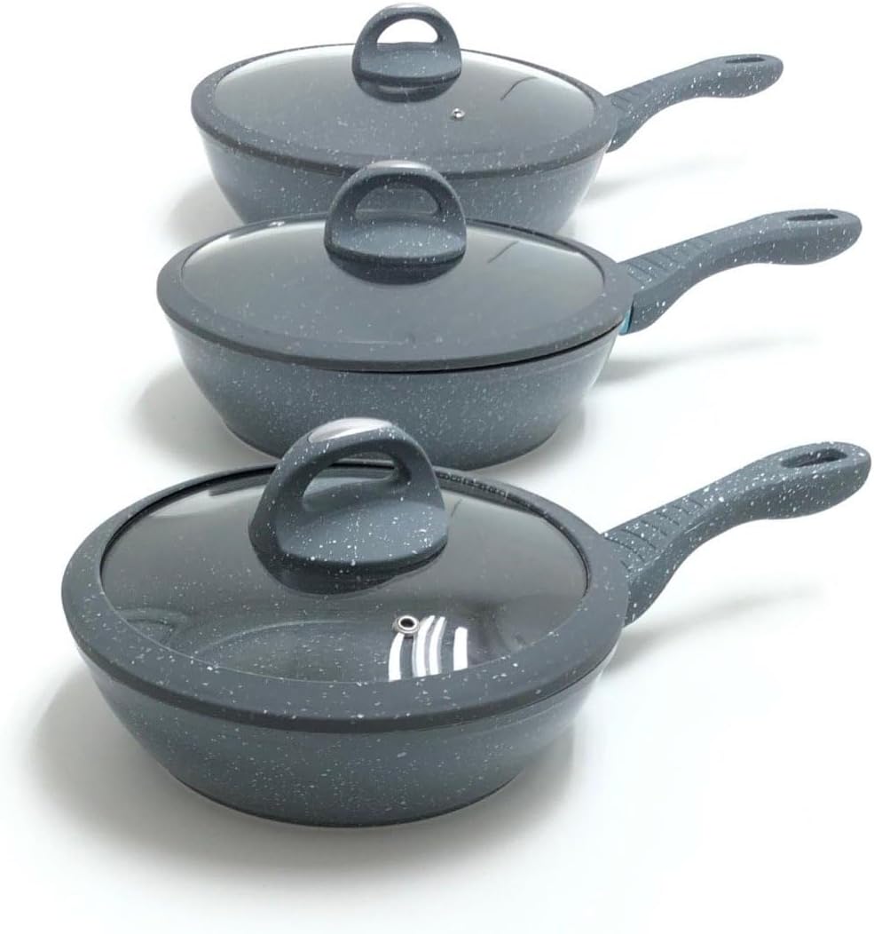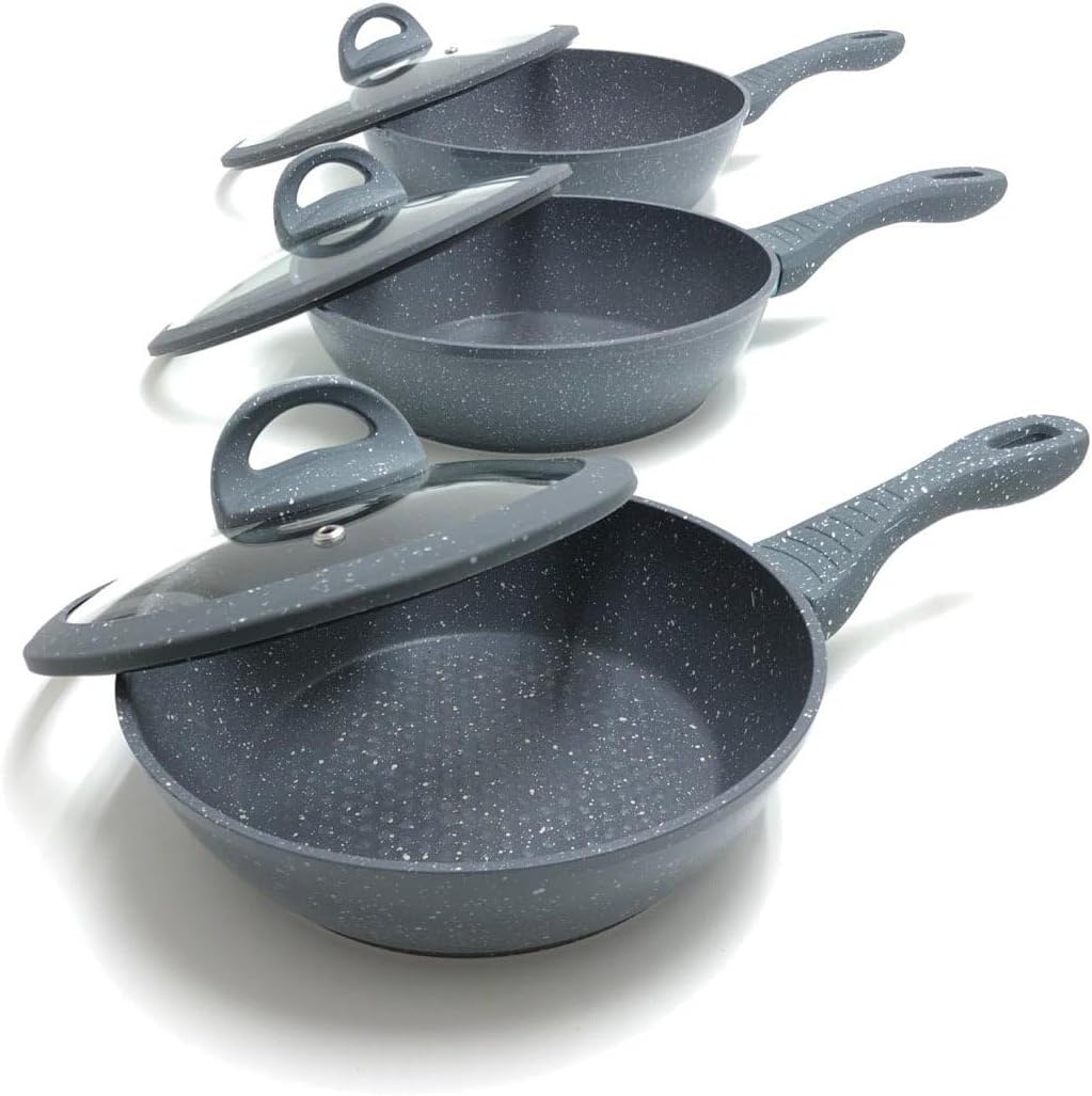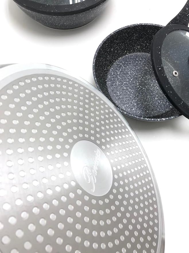 Tipo alto in pietra lavica composte da 3 padelle e 3 coperchi con manici particolari, doppie antiaderenti per una cucina sana ? con piano cottura adatto sia sulle cucine a gas che su quelle ad induzione