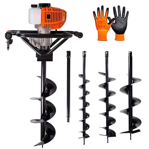 Trivella con motore 52cc 2 Tempi + 3 Punte 100 - 150 - 200mm + Barra di Estensione 50cm