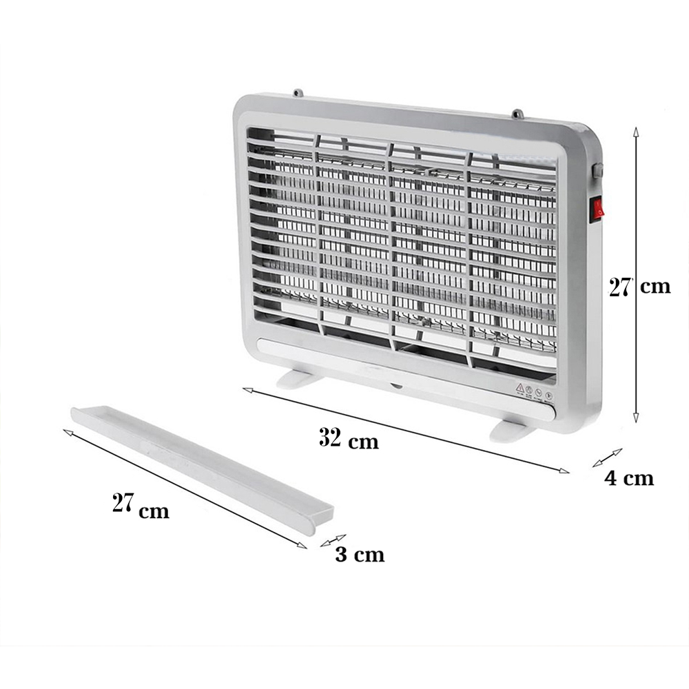 Tipo: Zanzariera elettrica – Potenza: 2W – Area coperta: 50 m² – Alimentazione: 240V - 60 Hz – Tecnologia: LED – Funzioni: Tasto ON/OFF, cassetto raccogli-insetti – Installazione: Da tavolo o sospesa con catena – Dimensioni: 32 x 4 x 27 cm – Peso: 0,720 kg – Colore: Neutro – Pulizia: Facile, con cassetto estraibile